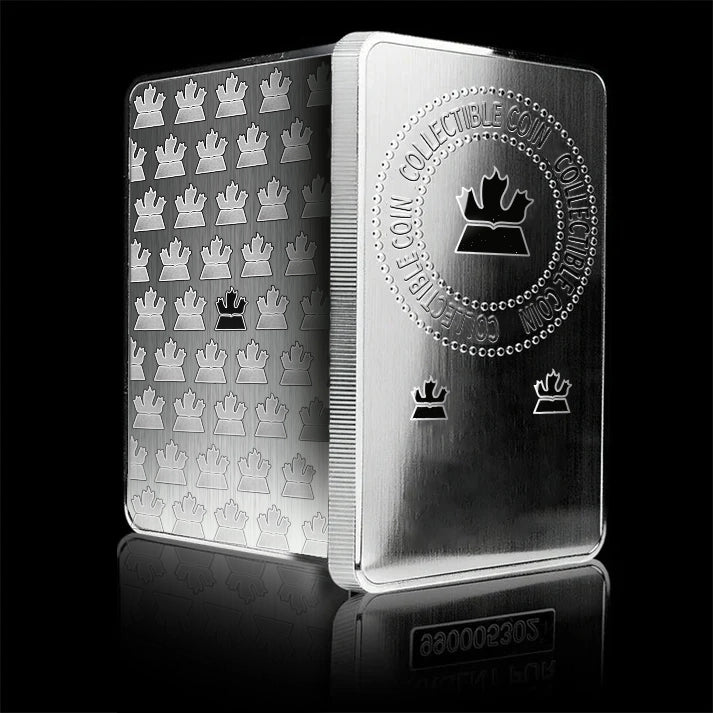 The reverse features a continuous horizontal maple leaf design, echoing the emblem at the center of the obverse, creating a visually pleasing effect. This exquisite design elevates the silver bar to a refined display of Canadian cultural heritage, with each maple leaf symbolizing Canada's natural beauty and enduring legacy. It is more than just a silver bar; it is a perfect fusion of pride and art.